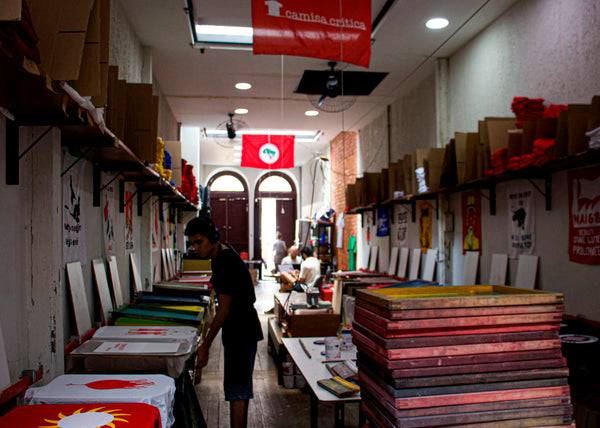 Hoje somos muitos: designer, estampador, corte e costura, suporte, administração. Edificando pautas urgentes, trabalhando com a Crítica.